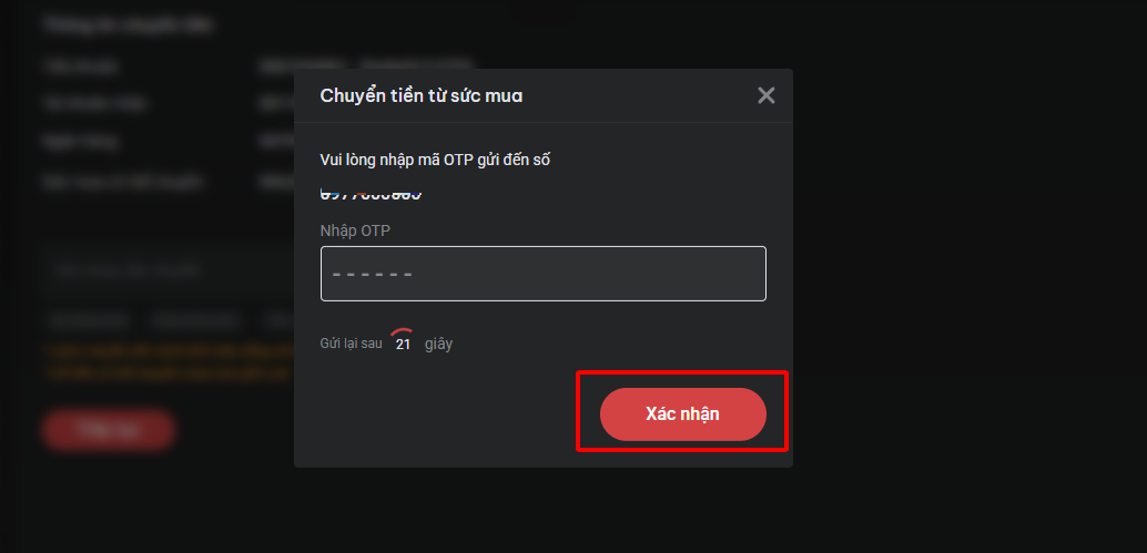 Thao tác Chuyển tiền từ sức mua tương tự với giao dịch chuyển tiền thông thường: