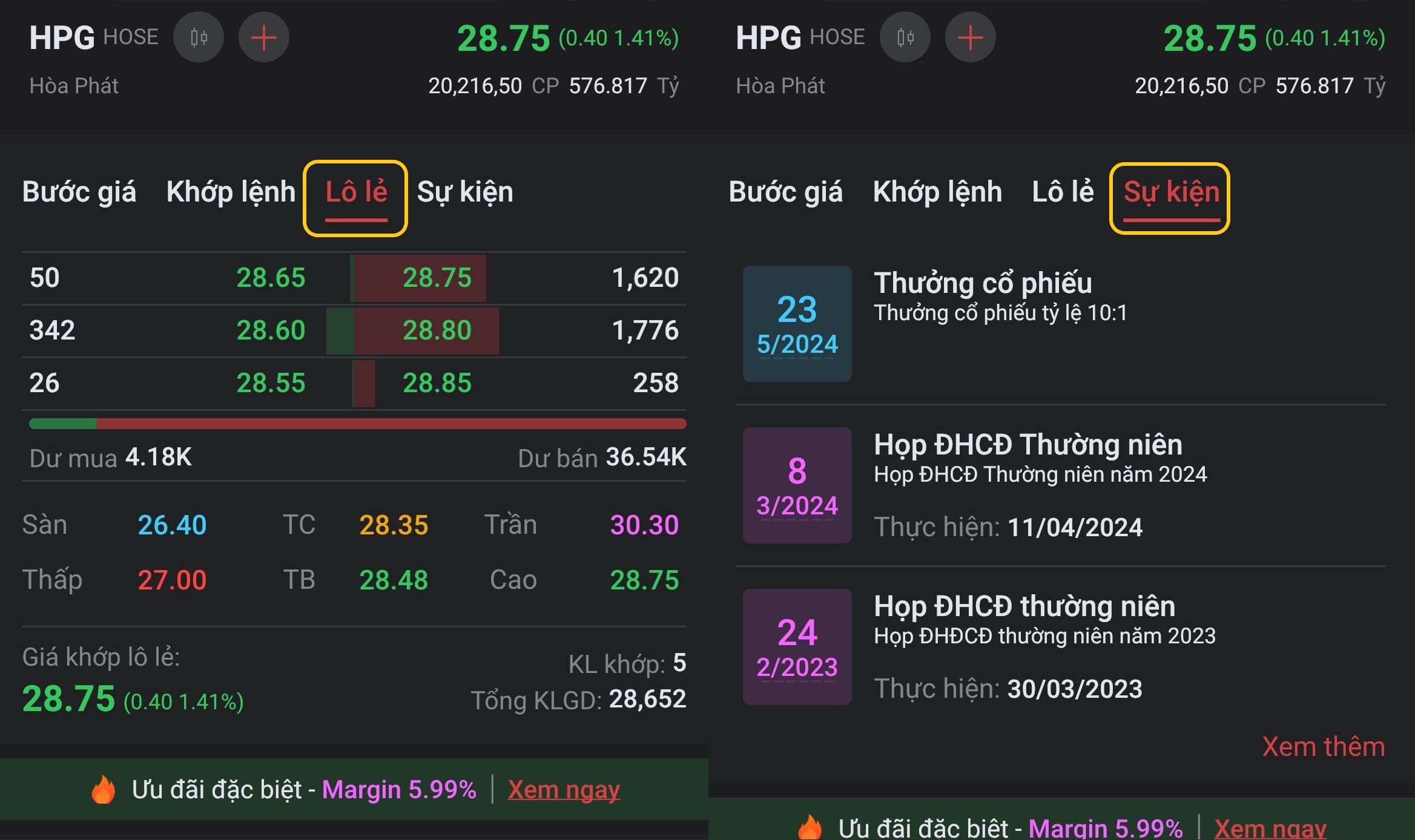 * <mark style="color:red;background-color:red;">**Lô lẻ**</mark>: Bảng giá lô lẻ của mã chứng khoán